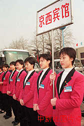 賓館禮儀小姐機場迎接兩會代表 2000年3月2日 09:12 ![]() 北京各賓館的禮儀小姐三月一日到機場迎接參加“人大”、“政協”會議的代表和委員們。作者:王麗南