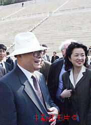 中國國家主席江澤民4月22日在雅典參觀首屆現代奧運會(1890年3月25日)會址。中新社記者 彭偉祥 攝