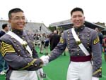 七華裔西點軍校畢業(附圖) 2001年6月4日 13:54 ![]() 洪偉杰(左)以第十五名的成績登畢業生榮譽榜,臺北市長馬英九的外甥余靖(右)亦獲多項榮譽 中新網紐約6月3日消息:位于紐約上州的美國陸軍官校(西點軍校,United States Military Academy atWest Point) 2日在滂沱大雨中舉行2001年畢業典禮,901名應屆畢業生中,有7名華裔子弟,其中洪偉杰以第十五名的成績登畢業生榮譽榜。 這七名華裔子弟是:洪偉杰、潘安驪、余靖、鄭建明、李之華、陳德凱(譯音)和楊丹尼爾(譯音),其中潘安驪是昨日唯一有華裔血統的女性畢業生,而余靖是臺北市長馬英九的外甥。 |