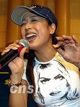 圖:“飛車女俠”孫悅 2001年6月8日 10:12 從青島開到濟南的路上孫悅駕駛著鳳凰越野車一路以140公里的時速狂奔!(沿途未遇巡警,否則駕照難保。) 中新社圖 魏孝明 攝