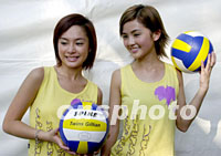組圖:樂壇組合Twins為沙灘排球賽營造氣氛 2001年08月23日 08:50 ![]() 樂壇女子組合Twins兩位歌手蔡卓妍(左)、鍾思桐(右)22日出席世界女子沙灘排球香港公開賽為觀眾歌唱表演,并與現場觀眾玩巨型沙灘球,增添樂趣營造氣氛。中新社傳真 鄧慶樂 攝 ![]() 樂壇女子組合Twins兩位歌手蔡卓妍(右)、鍾思桐(左)22日出席世界女子沙灘排球香港公開賽,手持沙灘排球,表現健康活力形象。中新社傳真 鄧慶樂 攝
