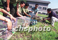 二十四日,北京市林政稽查大隊在京郊森林公園放生五百多只麻雀,這些麻雀是昨日在鳥市稽查救回的。中國目前已加大對各種野生動物的保護力度,于去年八月立法規定:捕殺、出售、食用麻雀已屬違法。中新社記者 張宇 攝