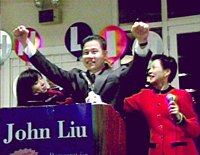 美國華裔參政開新篇 六名華人在地方選舉獲勝 2001年11月08日 10:09 ![]() 三十四歲的華裔青年劉醇逸新當選紐約市議員,成為美國歷史上第一位亞裔市議員。當地華人對其當選同聲祝賀,認為這是華人參政史上的一個新的里程碑。(劉醇逸生于臺灣,五歲跟隨家人移民紐約。)中新社記者 陳建 攝