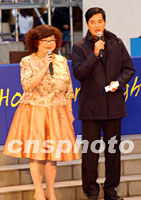 香港著名演藝界人士沈殿霞十二月九日主持“中電全城動感耀燈輝”活動。 中新社傳真 任海霞攝