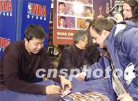 ![]() 今天中午,達(dá)拉斯小牛隊(duì)的高大中鋒王治郅出現(xiàn)在紐約市中心NBA專賣店里。他是第一個(gè)被美國(guó)職業(yè)籃球隊(duì)選中的中國(guó)球員。為表彰他的卓越才華和對(duì)籃球運(yùn)動(dòng)的貢獻(xiàn),一套以他個(gè)人肖像為主題的法定郵票今天開(kāi)始公開(kāi)發(fā)售。中新社記者 陳建 攝