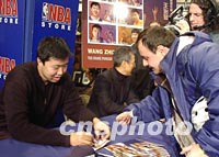 圖:中國(guó)球員王治郅為美國(guó)球迷簽字 2002年01月04日 17:23 ![]() 美國(guó)東部時(shí)間三日中午,美國(guó)職業(yè)籃球協(xié)會(huì)中唯一的中國(guó)球員王治郅出席了紐約市中心NBA專賣店里舉行的他個(gè)人肖像郵票首次公開展示會(huì)。這套郵票由利比里亞政府發(fā)行,可在全球通用。會(huì)后,他為慕名前來(lái)的美國(guó)球迷簽字。中新社記者 陳建 攝 |