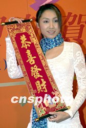圖:郭可盈向觀眾拜年祝大家「恭喜發財」 2002年02月10日 09:09 ![]() 香港無線電視劇集《法網伊人》劇中眾藝員9日特為該劇舉行宣傳活動,藝員郭可盈向觀眾拜年祝大家“恭喜發財”。中新社傳真 鄧慶樂 攝