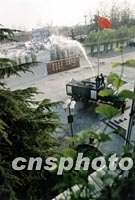 圖:消防演練與美化環境一舉兩得 2002年03月27日 10:36 ![]() 北京大興武警后勤基地消防隊,三月結合消防演練任務,派消防車一邊給大樹澆水,一邊訓練消防動作,一舉兩得。中新社圖 曹文 攝