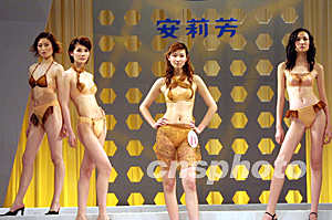 圖:上海國際服裝文化節上演時尚內衣秀 2002年04月27日 09:02 ![]() 二○○二“中華杯安莉芳”國際內衣設計大賽二十五日在上海世貿商城舉行。圖為模特在展示中外年輕設計師們設計的富有新意的內衣。中新社圖 湯彥俊 攝