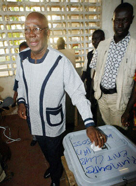 圖:5月14日塞拉利昂舉行總統(tǒng)選舉 2002年05月14日 21:10 5月14日,塞拉利昂舉行了內(nèi)戰(zhàn)結(jié)束后的首次總統(tǒng)選舉,此次共有9個(gè)候選人參加總統(tǒng)競選,參加投票的選民預(yù)計(jì)將達(dá)到230萬。中新網(wǎng)圖