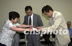 ![]() 花岡事件受難者聯(lián)誼會2日在日本國會發(fā)表《致日本內(nèi)閣函》,要求日本政府正視強擄、奴役中國戰(zhàn)俘勞工的歷史,承擔政治、法律、道義上的責任,公開、正式地向中國人民謝罪。圖為受難者家屬代表王紅向日本國會議員提交函件。中新社記者 陶光雄 攝