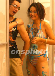 圖:酷暑難當 京城青年興起人體彩繪游戲 2002年07月14日 14:03 ![]() 中國各地今夏酷暑難當,京城青年興起人體彩繪游戲。她們展露美麗身材,追求彩繪與三點式服飾的和諧,尤為賞心悅目。作者:賈國榮