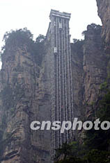圖:世界最高的觀光電梯在張家界試運行 2002年07月21日 18:52 ![]() ![]() 在湖南張家界武陵源風景區建造的百龍旅游電梯最近開始試運行。該電梯垂直高差三百三十五米,運行高度三百二十六米,是目前世界上最高的全暴露觀光電梯。作者:毛建軍