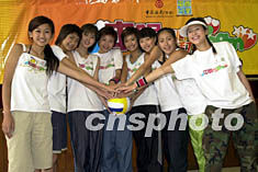 圖:歌星何韻詩等出席《中銀愛心活力Team》活動 2002年07月23日 19:41 ![]() 歌星何韻詩23日在香港出席由中國銀行與商業電臺攜手舉辦之《中銀愛心活力Team》活動,她與學界精英導師一起為保良局兒童和青少年傳授排球技藝。鄧慶樂 攝