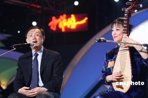 三月八日晚,慶!叭恕眿D女節文藝晚會在全國政協委員駐地上演,中國外交部部長楊潔篪與中國曲藝家協會副主席,蘇州市評彈團團長助理盛小云合作演出評彈,為出席兩會的女委員獻曲。中新社發 盛佳鵬 攝