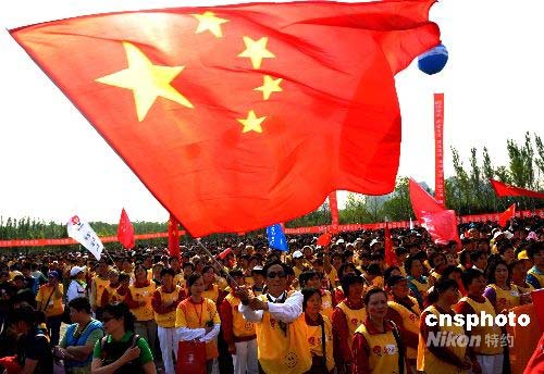 4月26日,在即將進入奧運倒計時100天的周末里,“微笑北京志愿奧運共創和諧——2008春季北京國際長走大會”在北京朝陽公園舉行。中新社發 廖攀 攝
