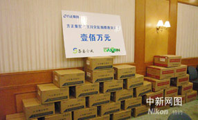 凝聚著臺資企業(yè)富士康科技集團(tuán)及其六十萬員工愛心的六千萬元人民幣善款,今天在此間由富士康集團(tuán)總裁郭臺銘的特別顧問張整魁先生,捐贈給遭受地震災(zāi)害的四川災(zāi)區(qū)。這是目前四川省收到的最大一筆臺商捐款。……