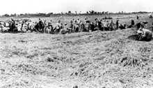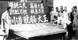 雞公山水稻畝產(chǎn)四萬八真相 2000年7月7日 14:09 ![]() 安徽省樅陽縣一塊號(hào)稱畝產(chǎn)1·6萬斤的 “衛(wèi)星田”。田里的稻子是從各地移來的 ![]() 大躍進(jìn)中,農(nóng)民表決心。照片據(jù)《圖片中國百年史》 □張勝林(河南信陽) 1958年9月1日,信陽縣雞公山人民公社新集大隊(duì)放出河南省水稻畝產(chǎn)特大“衛(wèi)星”:6畝6分3厘干部水稻試驗(yàn)田總產(chǎn)324375·5斤,平均畝產(chǎn)48925·7斤。這顆大“衛(wèi)星”升天后,新華社隨即發(fā)了消息,轟動(dòng)全國。全省各級(jí)領(lǐng)導(dǎo)親臨參觀和總結(jié)經(jīng)驗(yàn),9月9日《河南日?qǐng)?bào)》第二版以“雞公山上紅旗插,水稻畝產(chǎn)四萬八”的醒目標(biāo)題,對(duì)大“衛(wèi)星”的組織施放作了詳細(xì)報(bào)道。 這個(gè)被大躍進(jìn)狂風(fēng)吹起來的水稻“衛(wèi)星”,雖在當(dāng)時(shí)被歌頌為信陽人民農(nóng)業(yè)大躍進(jìn)的偉大創(chuàng)舉,卻留下了一個(gè)謎:照“衛(wèi)星”田里的水稻總產(chǎn)量計(jì)算,那么,這塊“衛(wèi)星”田平均每平方米就得產(chǎn)出稻谷73斤。然而,73斤稻谷就是放在一平方米的空地里,也要堆出一定高度,何況稻谷結(jié)在稻穗上,直徑3毫米左右的稻莖又如何承受得了呢? 為了解開這個(gè)謎,我們對(duì)當(dāng)年目睹現(xiàn)場的一些同志進(jìn)行了反復(fù)調(diào)查訪問。在調(diào)訪過程中,這些同志不僅幫助我們弄清了雞公山水稻畝產(chǎn)“四萬八”的真相,而且訴說了雞公山人民當(dāng)年吞下這個(gè)苦果的難言之苦。信陽縣越改越大的躍進(jìn)規(guī)劃 1957年,信陽縣和全國一樣,勝利實(shí)現(xiàn)和超額完成了國民經(jīng)濟(jì)第一個(gè)5年計(jì)劃,各條戰(zhàn)線出現(xiàn)了蓬勃發(fā)展的局面。然而,由于從上到下對(duì)成績的宣傳夸張,使一些干部的頭腦發(fā)熱,在指導(dǎo)方針上出現(xiàn)了急于求成的“左”的冒進(jìn)。1958年2月26日,中共信陽縣委召開擴(kuò)大會(huì)議,制定并通過了《信陽縣全面躍進(jìn)20條規(guī)劃》,號(hào)召和動(dòng)員全縣人民投入到大躍進(jìn)的洪流之中。 1958年5月,黨的八大二次會(huì)議通過總路線:“鼓足干勁,力爭上游,多快好省地建設(shè)社會(huì)主義”,在信陽縣宣傳貫徹后,信陽掀起了大躍進(jìn)的高潮。同月底,中共信陽縣委、縣人委對(duì)《信陽縣全面躍進(jìn)20條規(guī)劃》進(jìn)行了補(bǔ)充修改,把1958年全縣糧食總產(chǎn)量從原規(guī)劃的8·5億斤提高到“保證實(shí)現(xiàn)14億斤,爭取18億斤”(這樣驚人的數(shù)字,信陽縣不僅當(dāng)年沒有實(shí)現(xiàn),就是時(shí)隔30多年后農(nóng)業(yè)年景比較好的1996年,全縣糧食總產(chǎn)量也才達(dá)到9·5億斤,為1958年規(guī)劃14億斤的67·8%)。同時(shí),中共信陽縣委還提出“十年規(guī)劃,一年實(shí)現(xiàn)”的躍進(jìn)口號(hào)。外地衛(wèi)星的刺激 1958年6月,廣東省早稻畝產(chǎn)82525斤和河南省西平縣小麥畝產(chǎn)7320斤,這兩顆“衛(wèi)星”消息傳到信陽縣后,信陽縣感到鼓舞和震動(dòng)。7月5日,中共信陽縣委召開擴(kuò)大會(huì)議,縣委提出:“必須認(rèn)識(shí)到今年是農(nóng)業(yè)生產(chǎn)大躍進(jìn)的一年,不是要求增產(chǎn)幾成的問題,而是要翻幾番。因此,必須鼓足干勁,爭取更大勝利”。為了放出信陽縣的農(nóng)業(yè)高產(chǎn)“衛(wèi)星”,縣委要求“樹立敢想、敢說、敢作、敢為的前進(jìn)思想,從而解放思想,破除迷信”。 7月,全國宣傳貫徹毛澤東主席關(guān)于把工、農(nóng)、商、學(xué)、兵組成為一個(gè)大公社的指示,信陽縣聞風(fēng)而動(dòng),在全信陽地區(qū)率先建立人民公社。7月22日,中共信陽縣委在雞公山召開擴(kuò)大會(huì)議,決定撤銷全縣32個(gè)鄉(xiāng)、鎮(zhèn)及一個(gè)辦事處,成立12個(gè)人民公社。縣委要求,各公社要借人民公社化的東風(fēng),更好組織農(nóng)業(yè)生產(chǎn)大躍進(jìn),并示意試辦農(nóng)業(yè)“衛(wèi)星”田塊。 縣委擴(kuò)大會(huì)議結(jié)束后,各公社開始籌劃具有本地特色的農(nóng)業(yè)“衛(wèi)星”,棉花、玉米、紅薯等都被列入“衛(wèi)星”計(jì)劃之列。雞公山準(zhǔn)備水稻“衛(wèi)星” 在籌劃“衛(wèi)星”時(shí),地處豫鄂交界的雞公山人民公社黨委提出,淮河北的西平縣能放出小麥畝產(chǎn)七千三的全國大“衛(wèi)星”,我們淮河南的雞公山為何不能利用我們盛產(chǎn)水稻的優(yōu)勢,放出水稻高產(chǎn)“衛(wèi)星”?只要有雄心,思想再解放,“衛(wèi)星”定能升天。為了選準(zhǔn)“衛(wèi)星”的試點(diǎn),公社黨委曾幾次召開會(huì)議研究,最終選擇新集大隊(duì)的一塊6畝6分3厘干部試驗(yàn)田作為“衛(wèi)星”點(diǎn)。 這塊試驗(yàn)田在5月5日秧苗移栽時(shí),采用了3×3(行距、株距各3寸)的密植法,加之向這塊試驗(yàn)田投放的肥料較多,公社黨委因之認(rèn)為,這為我們秋收放“衛(wèi)星”奠定了基礎(chǔ)(經(jīng)過實(shí)踐證明,3×3的密植法是一種違反科學(xué)的技術(shù)躍進(jìn),它不僅破壞了光合作用,而且也不利于農(nóng)田管理,但3×3的密植法當(dāng)時(shí)卻作為農(nóng)業(yè)現(xiàn)代化在全縣推廣)。“調(diào)兵借將” 8月下旬,水稻已經(jīng)基本成熟,臨近收割。雞公山公社黨委于8月下旬連
