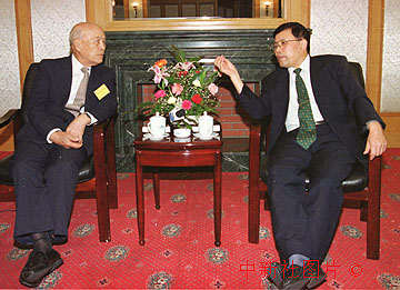遼寧省委副書記張行湘八月五日晚在沈陽市遼寧賓館會見了臺灣“促進中國現代化學術研究基金會”董事長王升(左)夫婦及其隨行人員,并一起共進了晚餐。中新社記者 趙振清 攝