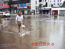 一場暴風驟雨襲擊海南,時間長達三天之久,城市部分街道積水,給居民生活帶來不便。中新社記者 關向東 攝