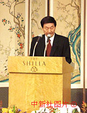 中國總理朱镕基18日在出席韓國經濟界舉行的午餐會上發表演講。中新社記者 王曉暉 攝
