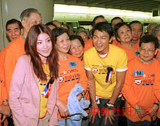 劉德華、陳慧琳在車站月臺合照。歌影紅星劉德華、陳慧琳18日在香港出席“長者地鐵安全運動”,同時為“暖流行動2000”主持揭幕禮,提倡敬老護老訊息,配合特區政府“終身學習,老有所為”口號。圖為出席活動長者與劉德華、陳慧琳在車站月臺合照。中新社傳真鄧慶樂攝