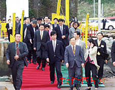 中國國務院總理朱镕基在結束對日本、韓國的訪問之前,在濟州島作短暫停留。中新社記者 王曉暉 攝
