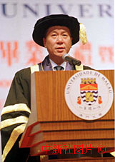澳門大學二十七日舉行學年畢業典禮并向獲得博士、碩士等學位的學生頒發證書,特區行政長官、澳大校監何厚鏵在典禮上發表講話。中新社記者 宗金柱 攝