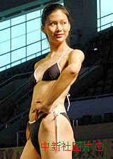 在日前結(jié)束的中國(guó)首屆職業(yè)模特選拔賽上,選自中國(guó)各地院的女模特選手在T型臺(tái)上一展風(fēng)采。圖為來(lái)自北京服裝學(xué)院的模特選手身穿泳裝展示。中新社記者 錢興強(qiáng) 攝