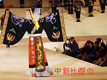 在廣西南寧舉行的國際民歌藝術節(jié)上,大型服飾晚會“聚焦綠城.2000”十九日晚在南寧市體育館舉行,由兩百多名中外模特展示了古今中外經(jīng)典服飾作品。圖為中國歷代服飾中的秦始皇服飾。中新社記者 錢興強 攝