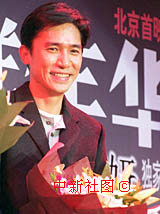 在53屆戛納電影節上榮獲兩項大獎的中國經典影片《花樣年華》,二十四日晚在北京嘉里中心飯店舉行首映式,影片中男主角扮演者,著名影星梁朝偉出席了首映式。中新社記者 錢興強 攝