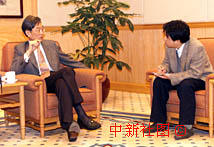 澳門回歸一周年前夕,中新社記者陳立宇(右)17日在澳門專訪外交部駐澳門特區特派員原燾。中新社傳真 滿會喬 攝