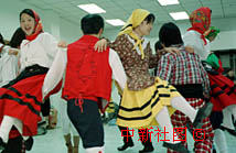 澳門土風舞表演團的團員正在加緊排練節目,準備參加澳門回歸一周年的慶祝活動。中新社記者 滿會喬攝