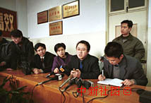 河南洛陽中心醫院院長李亞偉(右三)27日向媒體介紹說:洛陽特大火災發生后,有42名受害者送入該院,其中39名已經死亡,有3名幸運者脫離危險。中新社圖 慎重 攝