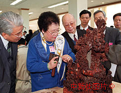 陳麗華向全國政協委員介紹紫檀雕刻工藝 2000年3月12日 09:32 ![]()