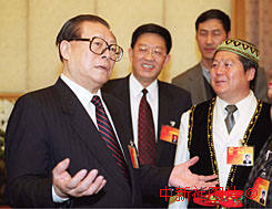 江澤民與青海人大代表共話西部開發 2000年3月6日 08:41 ![]()