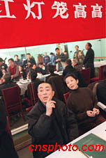 圖文:張藝謀執(zhí)導(dǎo)的芭蕾舞版《大紅燈籠高高掛》年后實(shí)排 2001年1月15日 19:25 ![]() 自稱不會(huì)跳舞也不懂芭蕾舞的中國(guó)著名電影導(dǎo)演張藝謀,將首次執(zhí)導(dǎo)大型芭蕾舞劇《大紅燈籠高高掛》,這是張藝謀15日在北京中央芭蕾舞團(tuán)召開的記者會(huì)上。中新社記者 王瑤 攝 ![]() 首次聯(lián)手合作的中國(guó)著名導(dǎo)演張藝謀和中央芭蕾舞團(tuán)團(tuán)長(zhǎng)趙汝蘅15日在北京一起出席大型芭蕾舞劇《大紅燈籠高高掛》的開排記者會(huì)。中新社記者 王瑤 攝
