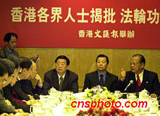 香港各界揭批“法輪功”座談會2月9日在香港文匯報社舉行,全國人大常委曾憲梓(右一)率先發言,中聯辦副主任劉山在(右三)等出席。中新社記者 任晨鳴 攝