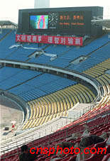 北京為申辦2008年奧運(yùn)會(huì)而改建三個(gè)重要場(chǎng)館,其中工人體育場(chǎng)的新型電子顯示屏已經(jīng)基本調(diào)試完畢。中新社記者 李剛 攝