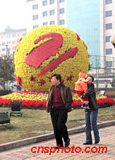 雖然北京的天氣還處于春寒之中,但已到處都是新布置的紅花綠草,顯得十分漂亮。北京正以嶄新的姿態(tài)迎接即將到來的奧委會考察團。中新社圖 郭高中 攝