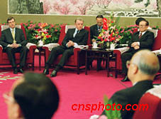 國家主席江澤民21日在北京會見以主席海因·維爾布魯根(中)為首的國際奧委會評估團。中新社記者 滿會喬 攝