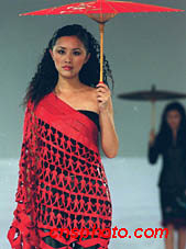 中國新絲路模特公司,二十二日晚在北京嘉里中心飯店,舉行赴德國服飾表演。圖為根據(jù)中國少數(shù)民族服飾創(chuàng)新設計的現(xiàn)代服飾作品。中新社圖 東方 攝