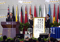 中國國家主席江澤民特意賦詩贈送亞洲論壇,祝賀在中國的第一個國際組織,二十七日于海南博鰲成立。中新社記者 賈國榮 攝