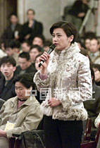 九屆全國人大四次會議七日下午舉行記者招待會,國家發展計劃委員會主任曾培炎與記者見面。圖為香港鳳凰衛視著名記者吳小莉獲得提問機會。中新社記者 毛建軍 攝