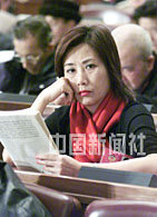 香港著名藝員汪明荃出席全國政協九屆四次會議,認真聽取大會發言。中新社記者 滿會喬 攝