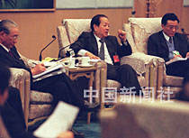 錢其琛副總理八日參加全國政協(xié)臺灣代表團討論,答復臺灣委員提出的問題。中新社記者 宋吉河 攝