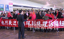 紐約當(dāng)?shù)厝A人華僑代表早早來到紐約拉瓜蒂國際機(jī)場,熱情迎接錢其琛副總理一行到來。錢其琛即將開始為期一周的美國之行,是美國新政府上臺(tái)后,兩國領(lǐng)導(dǎo)人的第一次正式會(huì)晤。此間輿論界推測(cè),雙邊關(guān)系、臺(tái)灣問題等將是雙方洽商的重點(diǎn)。中新社圖 陳建 攝