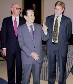 圖文:錢其琛會見美國工商金融界人士 2001年3月20日 08:08 ![]() 中新網紐約3月19日消息(記者陳建)美國東部時間19日中午,中國國務院副總理錢其琛在紐約會見了美國商會企業家代表。他告訴大家,自己將于本月二十一日訪問華盛頓,并在那里會晤美國總統布什、國務卿鮑威爾等政要。他希望中美雙方共同努力,為雙邊經貿關系進一步發展創造更好的環境。 相關報道:特稿:磨合中美關系 錢其琛開始訪美 相關報道:紐約華人華僑歡迎錢其琛副總理訪美 相關報道:圖:錢其琛赴美 相關報道:錢其琛說布什新政府已與中國有合作 相關報道:國務院副總理錢其琛離京前往美國訪問 相關報道:錢其琛訪美有利于推動中美關系向前發展 |
