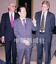 國務院副總理錢其琛在紐約會見美國工商企業(yè)家代表時表示,將于本月二十一日訪問華盛頓,并在那里會晤美國總統(tǒng)布什、國務卿鮑威爾等政要。他希望中美雙方共同努力,為雙邊經(jīng)貿(mào)關(guān)系進一步發(fā)展創(chuàng)造更好環(huán)境。中新社圖 陳建 攝