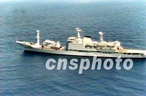 連日在中國出事海域搜救我方失蹤飛行員王偉的打撈船。中新社圖